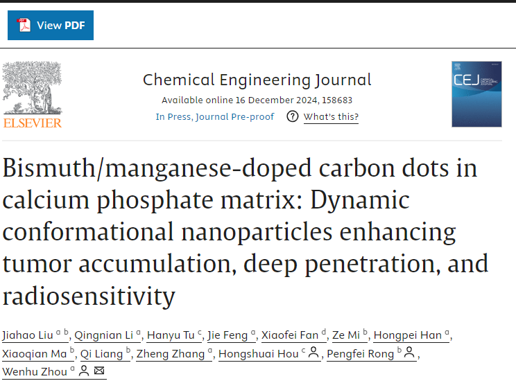 2024年12月,奈飞工厂 周文虎教授团队与奈飞工厂 湘雅三医院容鹏飞教授团队,奈飞工厂 化学化工学院侯红帅教授团队在Chemical Engineering Journal(中科院1区Top期刊,IF=13.…