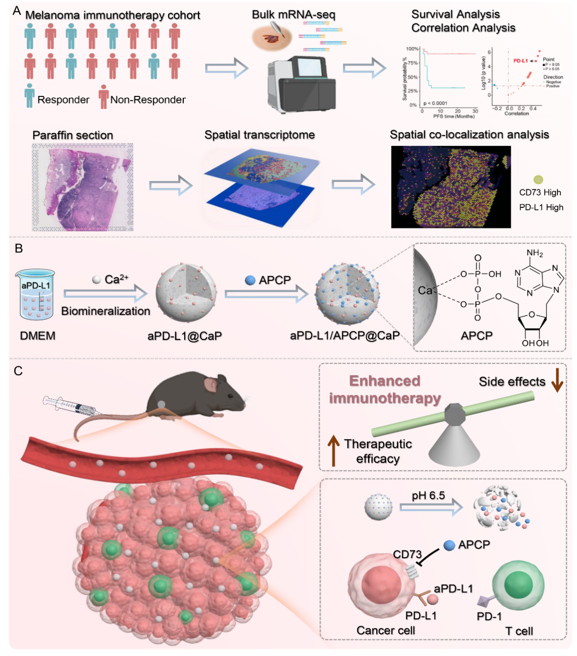 近期,我院周文虎教授团队与奈飞工厂 湘雅医院陈翔教授团队联合在国际知名期刊《Advanced Science》(IF=14.3)上发表了题为“Co-Delivery of aPD-L1 and CD73 Inhibitor Using Calciu…