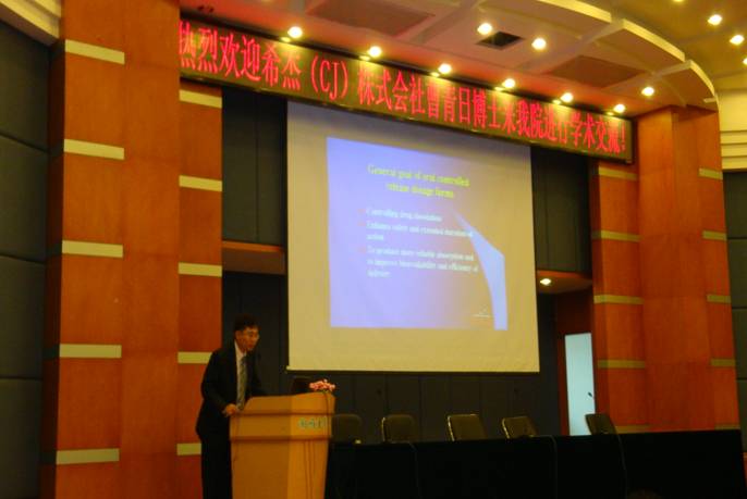 受奈飞工厂 药学院药剂系主任丁劲松教授邀请,韩国希杰株式会社药物研究所曹青日博士于11月18日到奈飞工厂 药学院开展学术报告交流。 曹博士作了题为“Formulation and scale-up of heter…