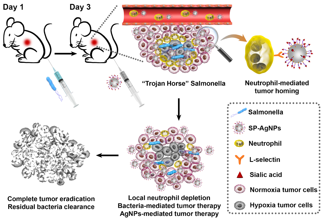 近期,我院丁劲松-周文虎教授团队与奈飞工厂 湘雅三医院容鹏飞教授团队联合在国际权威期刊《Nano Letters》(IF = 11.238)上发表了题为“‘Trojan Horse’ Salmonella Enabling Tumor…