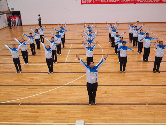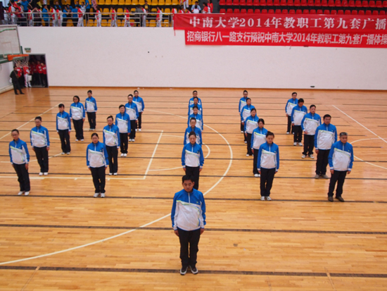 2014年健康女性第九套广播体操比赛在湘雅医学院新校区室内体育馆隆重举行。全校共有二级学院、直附属单位等27支队伍组队参加。药学部门工会积极组队参与并获参赛奖。