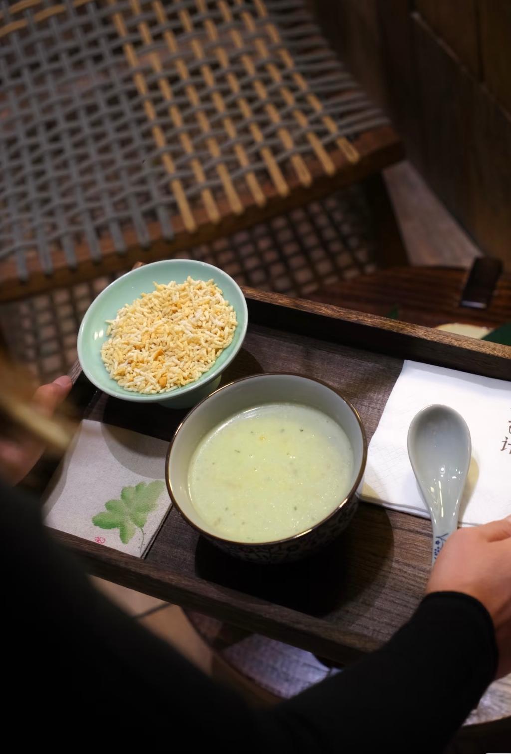 而最令人难忘的,是当地独具特色的擂茶。来到一处擂茶坊,只见擂钵与擂棍碰撞出清越的节奏,芝麻、花生、茶叶在陶臼中渐次化作碧玉般的茶浆。"茶要擂得匀,日子要过得醇。"老板娘笑着将盛满古意的茶递来,只见琥珀色的茶汤倒映着飞檐翘角的剪影,恍若饮下一盏六百年的光阴。“这一盏茶,不仅是味觉的享受,更是生活的沉淀。”有人轻轻感叹。品茶、话家常,时光仿佛慢了下来,温暖而美好。