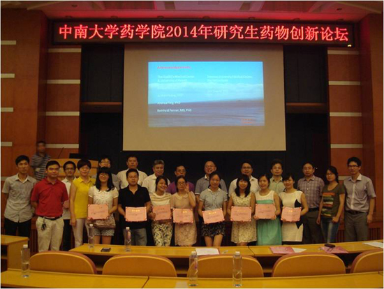 报告会结束后,专家组根据各位同学的表现评选出一、二、三等奖和优胜奖,并举行了颁奖仪式,合影留念。至此,药学院2014年研究生药物创新论坛圆满成功。