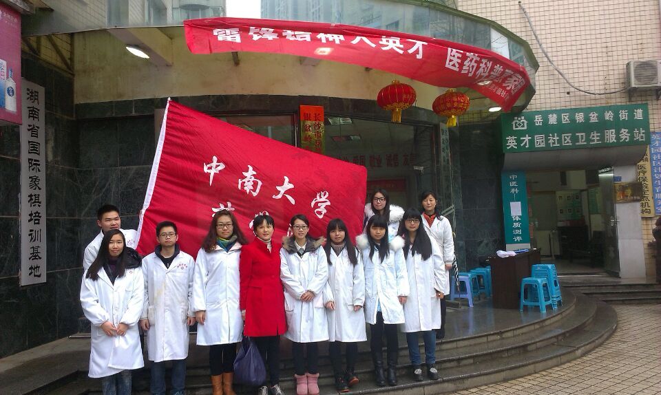 药学院工会、团委、研究生学生会、本科生学生会本着纪念雷锋同志,弘扬雷锋精神的宗旨,带着院党委彭林书记“学雷锋庆三八”的嘱托,在院党委王昊副书记和学工办桂玲智主任的带领下,于上午9:00在英才园社区开展“安全用药知识进社区”的活动。尽管天空飘着毛毛细雨,春寒料峭,可是师生们的心却是火热火热的。