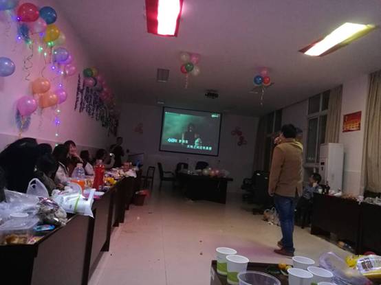 2017年12月29日晚7点,药理学系研究生举办的“2018年元旦晚会”在1楼会议室正式拉开序幕,呈现室外天寒地冻、室内热火朝天的景象。在全体同学合唱开场曲《爱》的带动下,乔杰、肖益、赵为陈等个人演唱曲目《阴天》、《从头再来》、《你是我的眼》和《如果我们不曾相遇》等粉墨登场;接着《你说我来猜》、《合力吹气球》、《五毛和一块》等游戏节目相继上演;在有奖竞答环节中,大家踊跃参与,全场气氛热烈,欢笑声不止;最后,药理系主任彭军老师的突然出现给同学们带来无比的惊喜,彭老师的现场飙歌更是将整场晚会推向高潮。