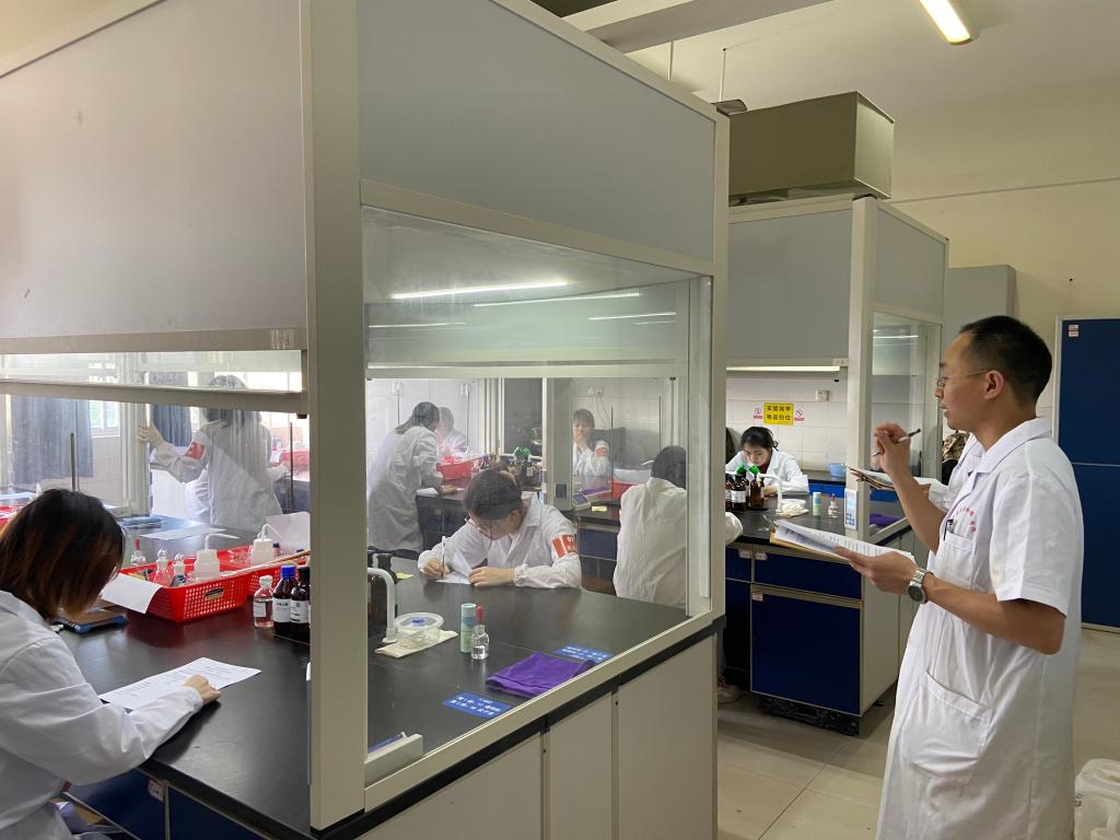 首届药学专业大学生实验技能竞赛分两个阶段进行:第一阶段初赛,主要是药学实验理论考试,已经在2020年12月28日进行,经过层层选拔,从72名参赛同学中选拔了45名同学参与2021年5月9日的决赛。本轮决赛,主要进行实验技能考核,具体包括:药理学动物实验、有机化学薄层分析和分析化学含量滴定等技术。