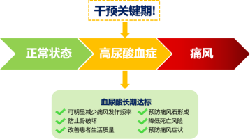 痛风的发作必然经历高尿酸血症阶段,而高尿酸可视为痛风的早期阶段。其实高尿酸与痛风并无本质的区别,都是血液中尿酸值高于正常范围,不过痛风是因为尿酸在关节等部位形成晶体沉积,从而引发炎症,破坏关节组织。所以说,如果不能控制住尿酸也就不可能控制住痛风。