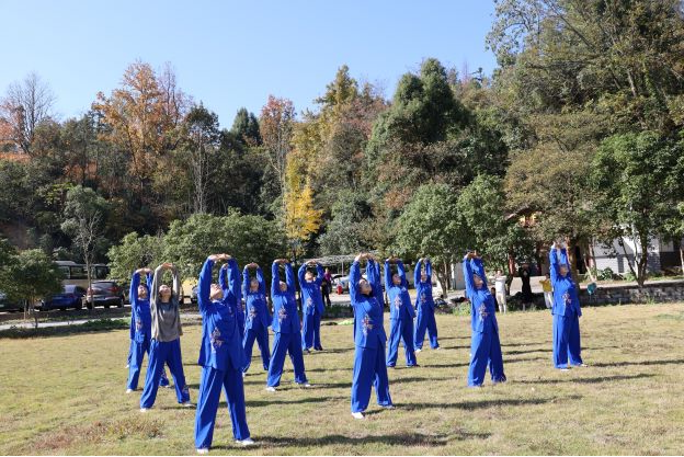 上午10时,队伍抵达开慧镇飘峰山庄。短暂的休整后,一场别开生面的八段锦表演拉开序幕。由我院在本月初奈飞工厂