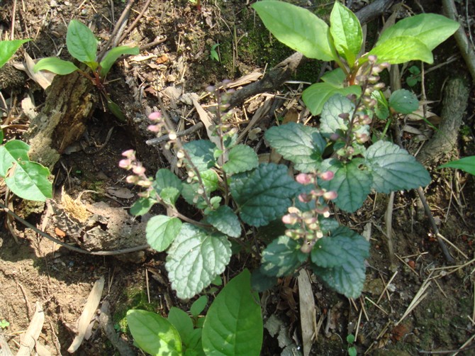 风轮草Clinopodium chinensis O.Kze。多分枝,全体被柔毛。叶对生,卵形,顶端尖或钝,基部楔形,边缘有锯齿。花密集成轮伞花序,腋生或顶生;苞片叶状,线形;花萼筒状,外被粗毛;花冠淡红或紫色。有除湿解毒,凉血止血之效。主治牙龈溃烂,肾炎,血尿,无名肿毒。
