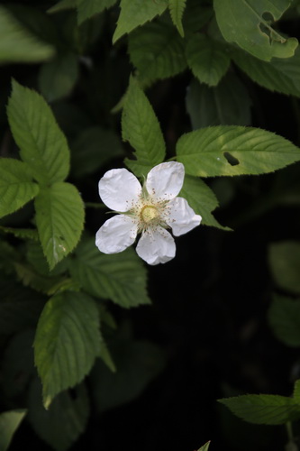蓬蘽Hirsutus Thunb. 蔷薇科悬钩子属。灌木,茎被柔毛和腺毛,疏有皮刺。小叶3~5枚,卵形或宽卵形,顶端急尖,顶生小叶顶端常渐尖,基部圆形,两面疏生柔毛,边缘具不整齐尖锐锯齿;顶生小叶柄较长,均具柔毛和腺毛,并疏生皮刺;托叶披针形或卵针披针形,两面具柔毛。花常单生于侧枝顶端,也有腋生;花梗也具柔毛和腺毛,或有极少小皮刺;花大,直径3~4厘米;花萼外密被柔毛和腺毛;萼片卵状披针形或三角披针形,顶端长尾尖,外面边缘被灰白色绒毛,花后反折;花瓣倒卵形或近圆形,白色,基部具爪;花丝较宽。全株及根入药,能消炎解毒、清热镇惊、活血及祛风湿。