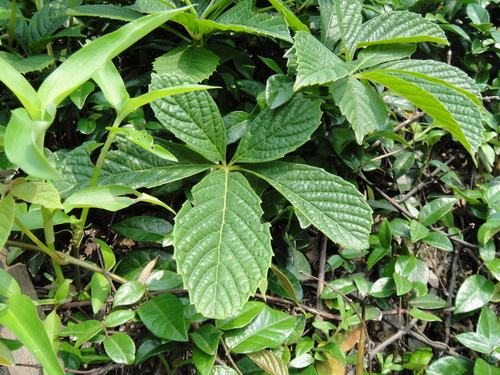 五叶爬山虎Parthenocissus quinquefolia,葡萄科爬山虎属. 其他描述见。