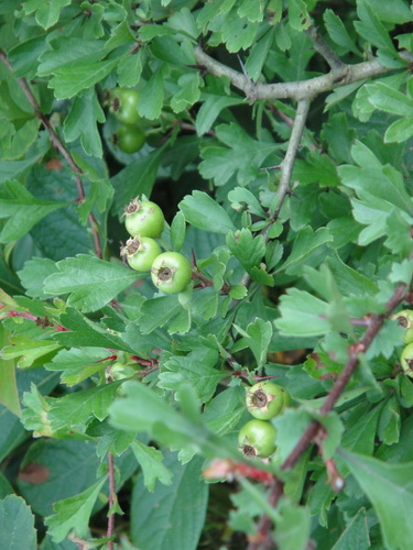 野山楂Crataegi cuneatae 蔷薇科野山楂属。多枝落叶灌木,枝条有刺针;幼枝有短柔毛。叶阔倒卵形与倒卵状长椭圆形,基部渐狭而接近于短叶柄,基部楔形,边缘有缺刻及不整齐锯齿,顶端常为3裂,表面平滑无毛,背面有疏毛,脉上亦稍有毛,托叶近于卵形,有牙齿。花白色,伞房花序,3~7花丛生,梨果球形或梨形。茎、叶、果实及果核均可入药,有健胃消积,收敛止血,散瘀止痛之效,果实消积散瘀,补脾健胃,行结气,化血块,活血。化食磨积,治反胃,小儿麻疹,产妇腰痛,妇人崩带,疝气,老人腰痛。消积。主治漆疮。