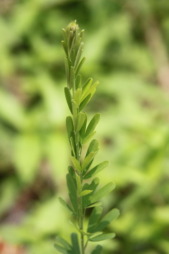 截叶铁扫帚Lespedeza cuneata (Dum.Cour.) G.Don 别名绢毛胡枝子、小叶胡枝子,中药名夜关门,豆科胡枝子属。直立小灌木, 枝细长,薄被微柔毛。 3出复叶互生,密集,小叶极小,线状楔形,先端钝或截形,有小锐尖,在中部以下渐狭,上面通常近秃净,下面被灰色丝毛。 花1~4朵生于叶腋,具极短的柄;花冠蝶形,黄白色,有紫斑,生于下部花束的,常无花瓣;旗瓣椭圆形,有爪,龙骨瓣不甚弯曲。全草入药,有补肝肾,益肺阴,散瘀消肿之效,用于遗精,遗尿,白浊,白带,哮喘,胃痛,劳伤,小儿疳积,泻痢,跌打损伤,视力减退,目赤,乳痈。