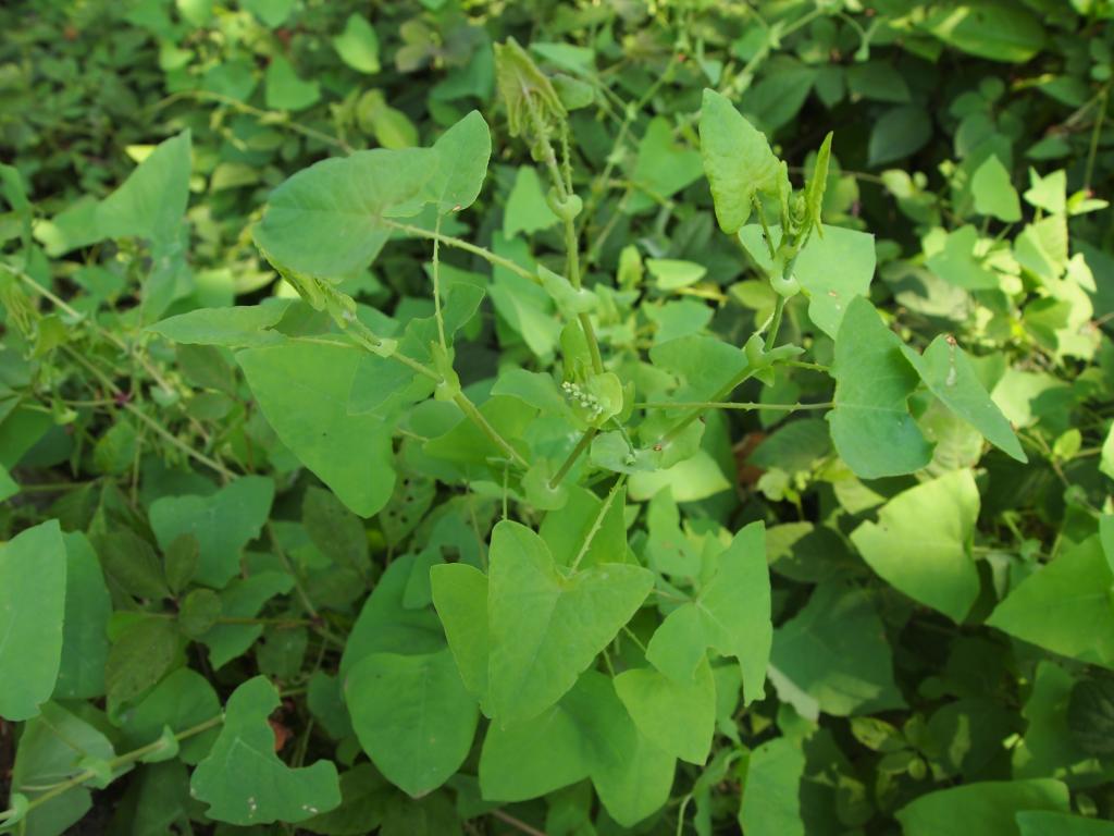 看到了何首乌之后,我失望了许多——在脑海中想象着她该有如商陆一样高大的身躯,没想到她只是长着像牵牛花一样细瘦的茎。而且她太小了,我们也没能挖出一男一女人形的根。
