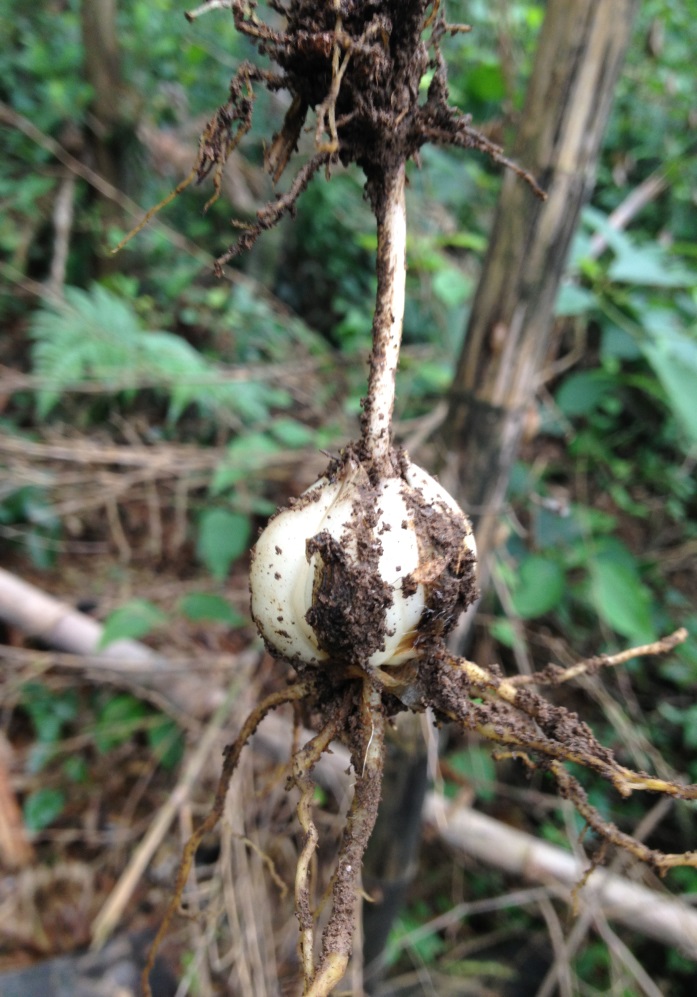 看完水库沿途的植物,我们正式开始了探险之旅。放弃原本的登山大道,改走丛林中若有似无的间隙。一路上,我们披荆斩棘,李老师在最前方凿凿开路,曾老师在后面给大队压阵,过程中充满了艰辛。却也正是在样,我们才有机会在树林中看到了大道上见不到的风景:高大粗壮的竹,茎伸得长长的虎杖,挖到了传说中的黄精和百合,也见识到了山野中蚊子的厉害。虽然爬山路上艰难险阻,但此处风景别样精彩。