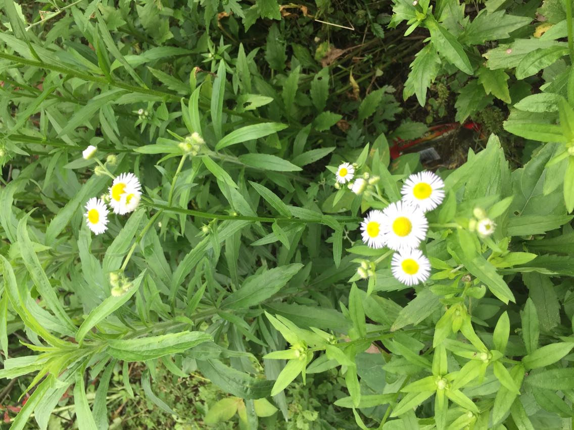 首先沿着公路缓缓上行,沿路生长着各式各样的植物,李老师便开始了认真的讲解。第一个认识的植物是开着黄白色小花的小飞蓬。淡雅朴素,菊科植物小飞蓬在丛丛植物中不太起眼,却别具一番韵味。