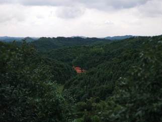 三个小时的车程过后,我们来到目的地贾岭药博园。这里被几座小山环绕,山上郁郁葱葱被植被覆盖,唯独的几座建筑也别有韵致,是个回归田园的好去处。